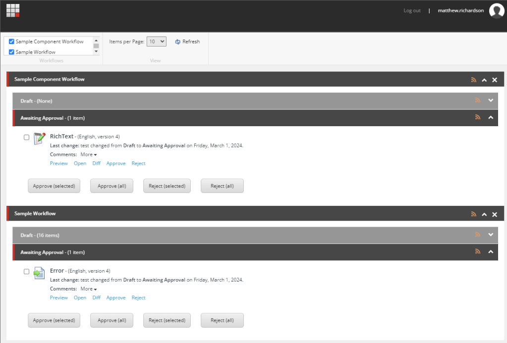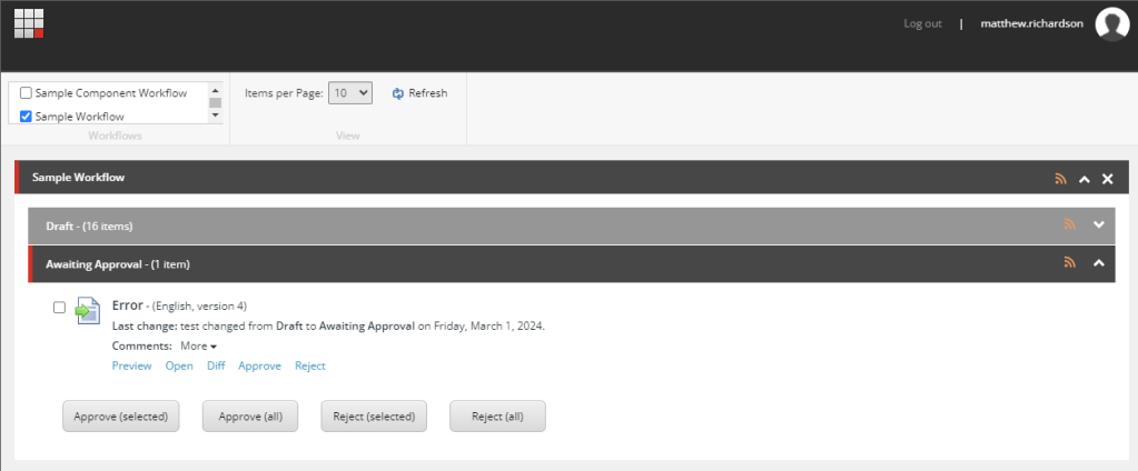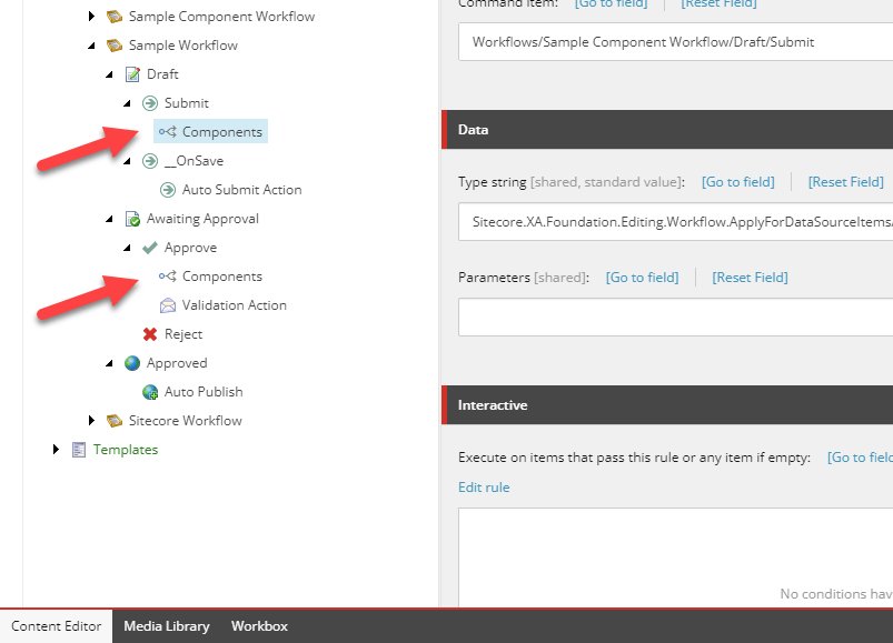 ( 2 ) Create a second, identical workflow for all non-page objects that have a data source. Along with former Sitecore MVP, Matt Richardson, we tested a proof-of-concept on this idea, assigning a copy of the workflow to components in the Data folder of a page and created a procedure to transition the workflow states of the subitems and related items along with the page’s workflow. It worked! In the Workbox, all the content author needs to do is deselect the workflow for non-pages and their view will be once again limited to pages. And the best part about it is that it does not require any customization to the UI so it should work just as well in XM Cloud as on XP.